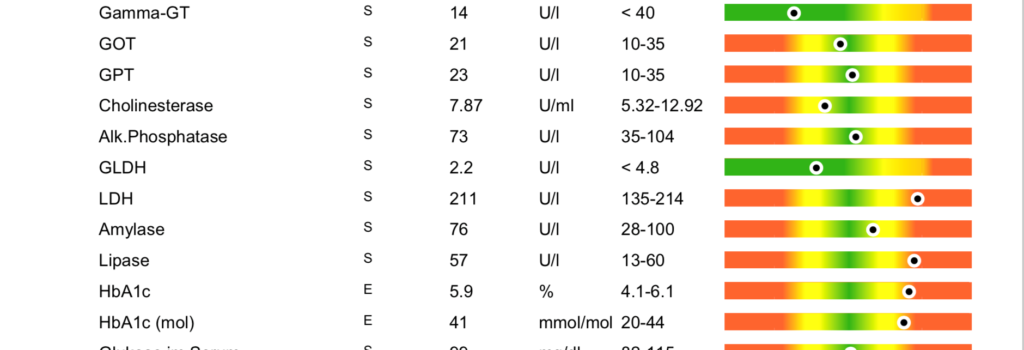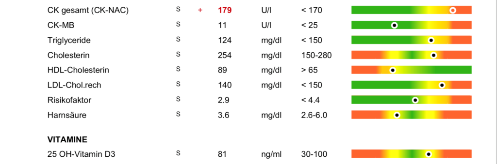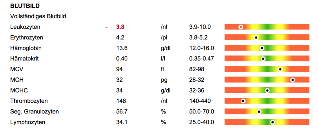 Der Befundbericht wird farbig in „Ampelfarben“ erstellt, so dass Sie schon selbst erkennen können, ob die Werte im „grünen Bereich“ sind oder im roten – denn hier besteht Handlungsbedarf.